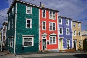 Uh, no, but I like a lot of periods. One of my favourite periods lately has been Streamlined Moderne. And you’ve got a really fantastic streamlined moderne building in St John’s, which is the American Aerated Water Company, [as it was called] in 1948. And the thing about Streamlined Moderne is it’s a very plain, usually flat roofed, and it has lines on the facades and they’re like speed lines. And I always worry about these buildings because people look at them and go, ‘oh yeah, no, that’s not worth saving.’ And they disappear. But they are a really fantastic design, and they’re kind of related to Art Deco. And what’s nice about St John’s is it isn’t just about old buildings. You’ve got some really great 20th century and 21st century buildings. And some really important architects. And you’ve got unique styles. For example, the early Georgian Style, like the Mallard Cottage and the Anderson house, they’re in what’s called the Pavilion Style, which is a rectangle with a hip roof. And that’s distinctly different from what you find in other provinces. And buildings like The Rooms are very modern, postmodern buildings, and they express a culture. And one really interesting modern building is the Fogo Island Inn, because it expresses the environmental and cultural aspect of the postmodern. The Fogo Island Inn is built on stilts, like houses in the region, and it was built so sensitively as to not disturb any of the local environment, which is unique in that area. So you’ve got lots of great things. I mean, I could go on and on about Newfoundland’s architecture.