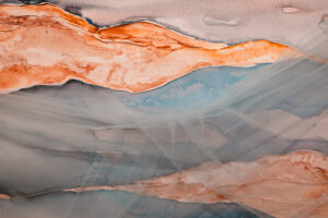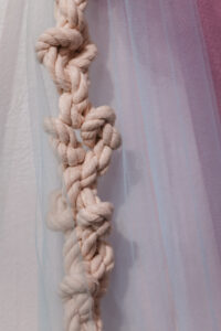 “In a world dominated by virtual interactions and fast consumption of images, this exhibition seeks to slow down the spectator and reconnect them with the physical and sensory world,” the notes for the newly opened Sensory Movements explain. “This watercolour painting incorporates transparent fabrics, the exhibition allows visitors to reshape and transform their surroundings. It creates a living environment where the boundaries between art and nature blur, offering a tactile and visual journey that mirrors the organic movements found in the natural world. The installation seeks to evoke a sense of connection between humans and the environment, inviting visitors to actively participate in the experience of creation and change. By allowing them to touch and manipulate the fabrics, the installation symbolizes our ability to influence, move, and reshape the landscapes we inhabit. The layering of fabric and artwork reflects the complexity of nature, while the ambient sound adds another layer of depth, echoing the rhythm of life in nature.”