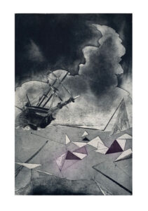 “Using historical events as a starting point, particularly events of survival and exploration, I craft new narratives from old. Currently my research is involved with polar exploration, and nautical lore. Taking elements from literary fiction and oral traditions I deconstruct historical events. References to personal history as well as art history factor in to these revisions of explorer narratives.