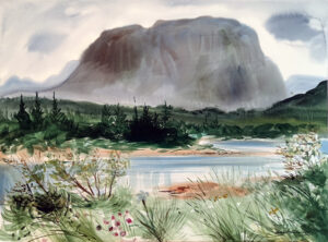 Images: Cyril’s Kite (Monotype, 15 x 36 in, 1996); Enclosure with Red and Blue Doors (Watercolour, 21 x 29 in, 1987): Gros Morne Park (Watercolour 21 x 29 in, 1987) courtesy Emma Butler Gallery.