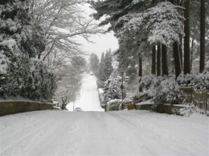 Plus, it was one of the coldest winters on record, that year I went to trade school, with snow up to our butts and I had to walk two miles to get there, and three miles back given how ‘back’ was mostly uphill. And every step forward was to slip back three. Sometimes I was forced to drop onto my butt and dig in my heels and push myself up backwards because of the ice covering the pavement, praying to the sweet Jesus no car or tractor would come sliding down the hill to greet me. Lovely place for a dress and garters.